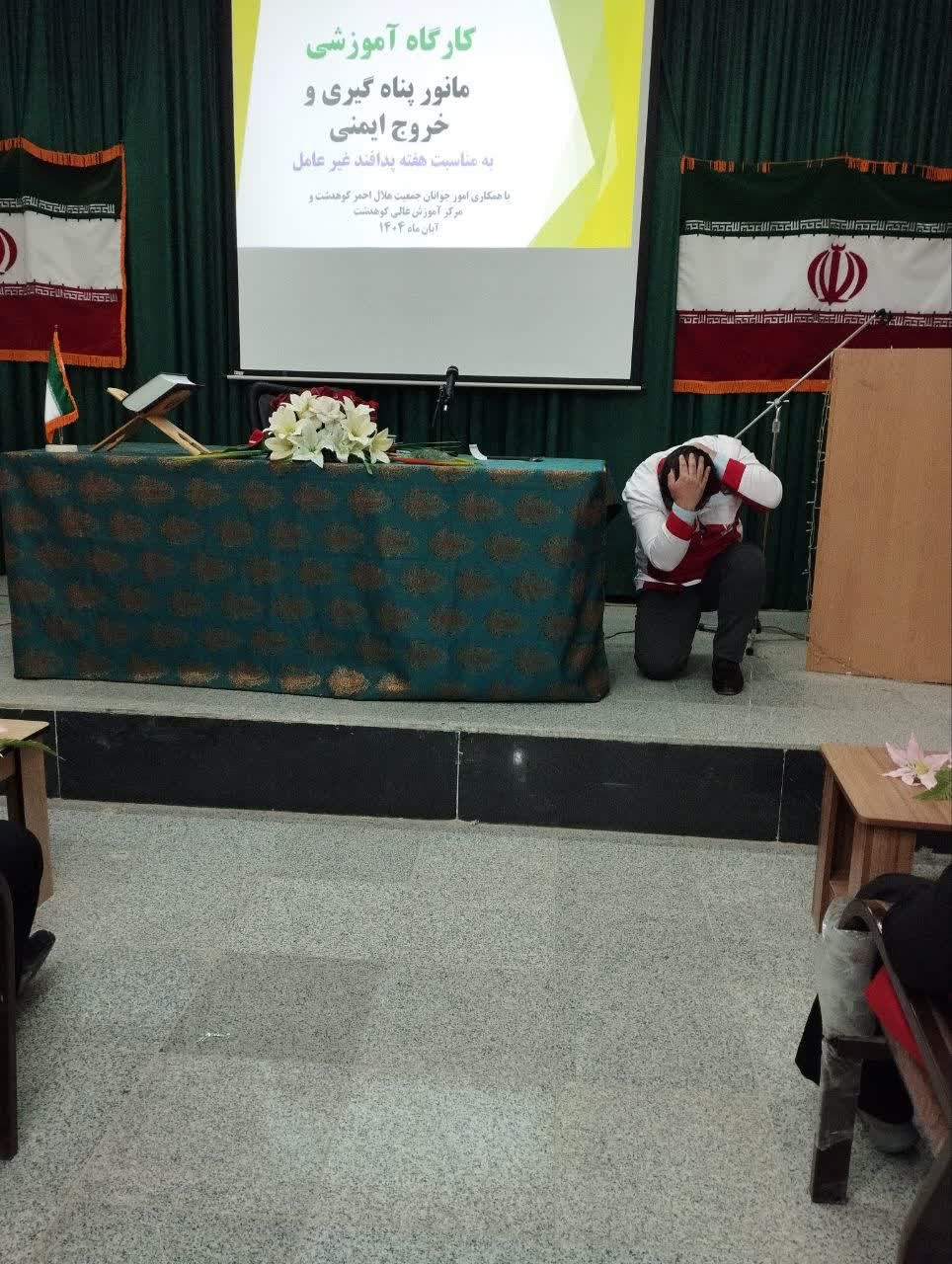 به گزارش روابط عمومی مرکز آموزش عالی کوهدشت، به مناسبت هفته پدافند غیر عامل مانور پناهگیری و خروج ایمن توسط مدرسین جمعیت هلال احمر شهرستان کوهدشت برگزار شد.